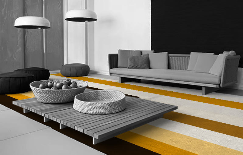A rug lets you define a particular area within a room, usually an area for relaxation. So, instead of laying your rug in front of your sofa, creating a dividing line between room and sofa – lay it underneath. Just halfway is enough to make your sofa and rug appear as a single design statement, and to make the sofa seem even more inviting. Also make sure your rug extends generously to either side of your sofa. Too little, and your furniture will feel cramped within the space.