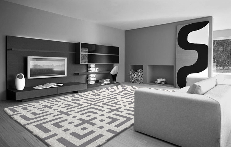 Typically larger rugs will create a feeling of order and calm; whereas smaller rugs can divide a room but are suitable for a variety of situations. For plain or muted tones, a larger rug can work better, whereas a larger rug featuring vivid colours and a busyA carpet is essentially a rug that fits your room from wall to wall. In practice you need to order a rug that's bigger than your room by at least 200mm in every direction. It's better to get a carpet fitter in to measure because they can also give you a price for fitting. And they'll know exactly how to take account of irregularities such as recesses and rooms that aren't exactly square. You should also talk to us before you order anything that has to fit a room or staircase exactly. We can help you align your rug pattern with your room. design can be potentially overpowering.