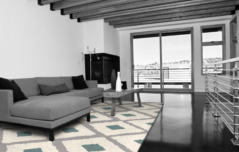 To unify a room, you will often need a large rug – large enough to accommodate your furniture and leave a generous margin beyond. If your furniture is too close to the edge of the rug, the effect looks cramped – as if your rug is tugging everything together. Furniture that stands next to walls is trickier to deal with. The best solution is to leave it off your rug. Having some items of furniture wholly, and others partly, on your rug destroys the symmetry. You will lose the sense of unity.