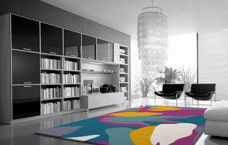 Typically larger rugs will create a feeling of order and calm; whereas smaller rugs can divide a room but are suitable for a variety of situations. For plain or muted tones, a larger rug can work better, whereas a larger rug featuring vivid colours and a busy design can be potentially overpowering.