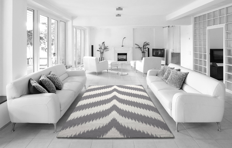 Another highly effective arrangement is to lay a rug between two sets of facing seats, often with a low table in the middle. Laid out this way, your rug creates a sense of intimacy. It defines the space as somewhere special. Determine if your rug extends beyond the seating at either end. The extension draws your eye into the space and makes it seem bigger than it is.