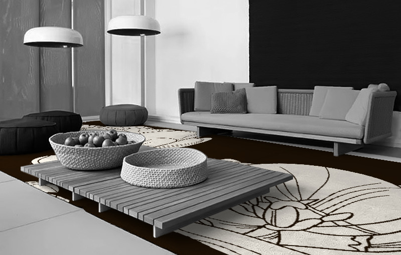 To unify a room, you will often need a large rug – large enough to accommodate your furniture and leave a generous margin beyond. If your furniture is too close to the edge of the rug, the effect looks cramped – as if your rug is tugging everything together. Furniture that stands next to walls is trickier to deal with. The best solution is to leave it off your rug. Having some items of furniture wholly, and others partly, on your rug destroys the symmetry. You will lose the sense of unity.
