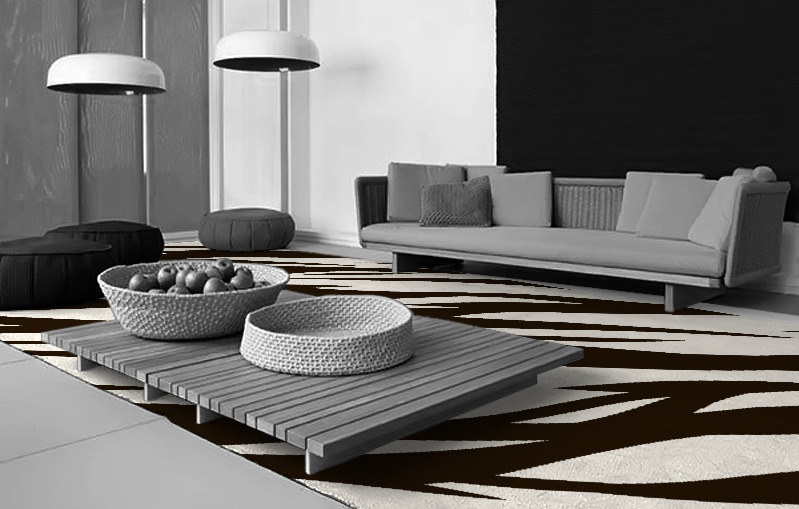 Another highly effective arrangement is to lay a rug between two sets of facing seats, often with a low table in the middle. Laid out this way, your rug creates a sense of intimacy. It defines the space as somewhere special. Determine if your rug extends beyond the seating at either end. The extension draws your eye into the space and makes it seem bigger than it is.