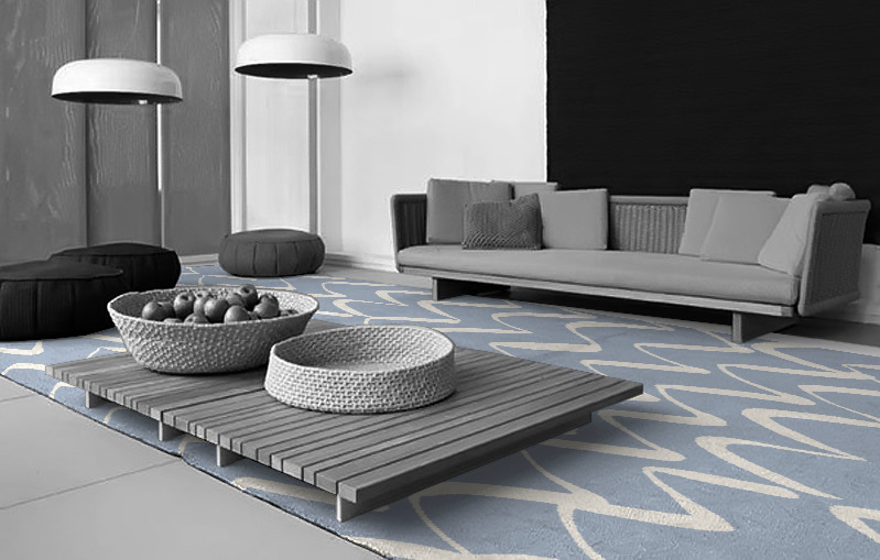 Another highly effective arrangement is to lay a rug between two sets of facing seats, often with a low table in the middle. Laid out this way, your rug creates a sense of intimacy. It defines the space as somewhere special. Determine if your rug extends beyond the seating at either end. The extension draws your eye into the space and makes it seem bigger than it is.