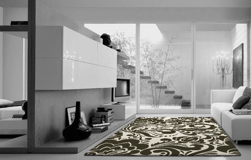 Typically larger rugs will create a feeling of order and calm; whereas smaller rugs can divide a room but are suitable for a variety of situations. For plain or muted tones, a larger rug can work better, whereas a larger rug featuring vivid colours and a busy design can be potentially overpowering.