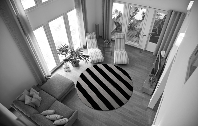 A rug lets you define a particular area within a room, usually an area for relaxation. So, instead of laying your rug in front of your sofa, creating a dividing line between room and sofa – lay it underneath. Just halfway is enough to make your sofa and rug appear as a single design statement, and to make the sofa seem even more inviting. Also make sure your rug extends generously to either side of your sofa. Too little, and your furniture will feel cramped within the space.