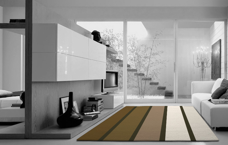 Typically larger rugs will create a feeling of order and calm; whereas smaller rugs can divide a room but are suitable for a variety of situations. For plain or muted tones, a larger rug can work better, whereas a larger rug featuring vivid colours and a busyA carpet is essentially a rug that fits your room from wall to wall. In practice you need to order a rug that's bigger than your room by at least 200mm in every direction. It's better to get a carpet fitter in to measure because they can also give you a price for fitting. And they'll know exactly how to take account of irregularities such as recesses and rooms that aren't exactly square. You should also talk to us before you order anything that has to fit a room or staircase exactly. We can help you align your rug pattern with your room. design can be potentially overpowering.