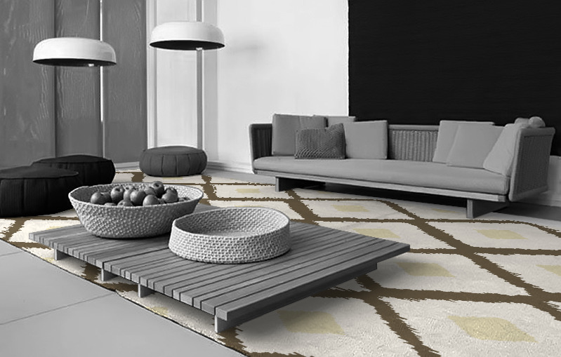 Another highly effective arrangement is to lay a rug between two sets of facing seats, often with a low table in the middle. Laid out this way, your rug creates a sense of intimacy. It defines the space as somewhere special. Determine if your rug extends beyond the seating at either end. The extension draws your eye into the space and makes it seem bigger than it is.