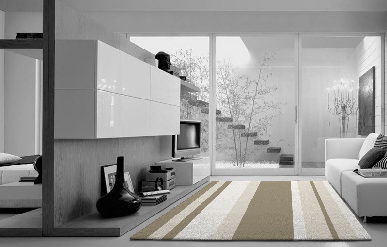 The fully customisable Broadstripe hand-tufted pure wool rug is made to measure and exclusive to rug couture.