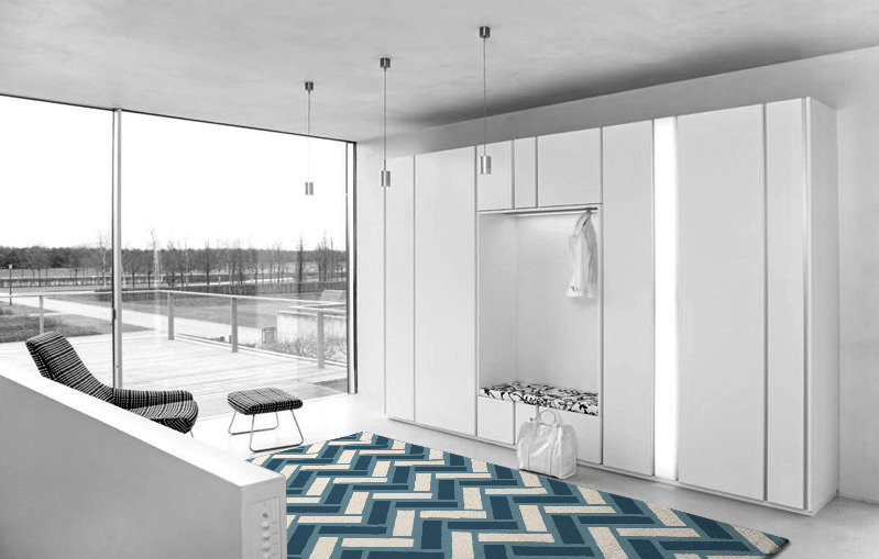 The fully customisable Tracks hand-tufted pure wool rug is made to measure and exclusive to rug couture.