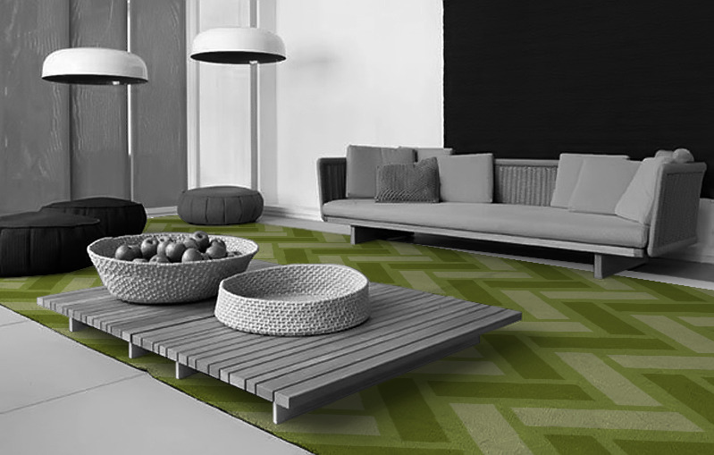 The Tracks rug is priced at £ and available in extra large sizes of up to 500cm x 1200cm (16ft x 40ft).