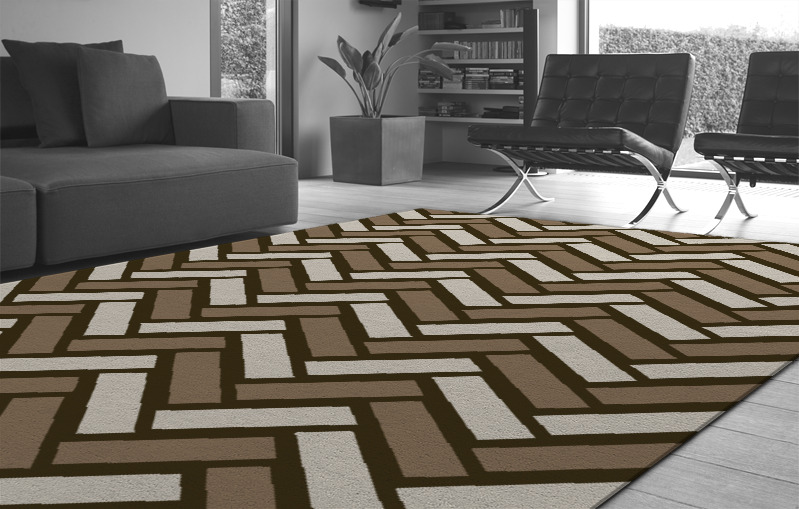 The fully customisable Tracks hand-tufted pure wool rug is made to measure and exclusive to rug couture.