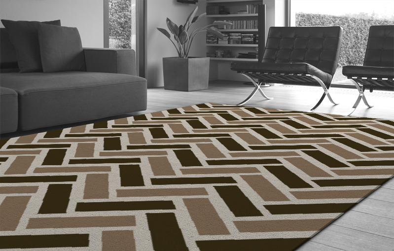 The fully customisable Tracks hand-tufted pure wool rug is made to measure and exclusive to rug couture.