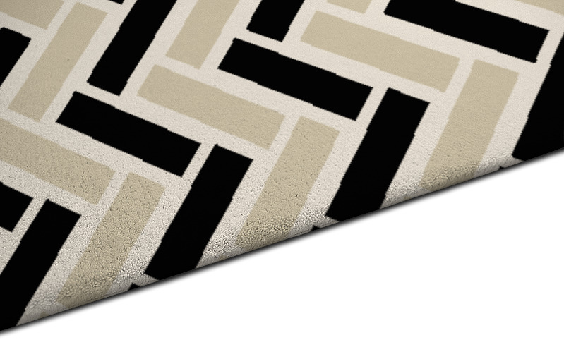 The fully customisable Tracks hand-tufted pure wool rug is made to measure and exclusive to rug couture.