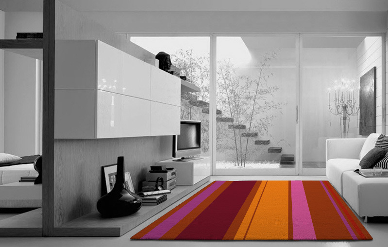 Typically larger rugs will create a feeling of order and calm; whereas smaller rugs can divide a room but are suitable for a variety of situations. For plain or muted tones, a larger rug can work better, whereas a larger rug featuring vivid colours and a busyA carpet is essentially a rug that fits your room from wall to wall. In practice you need to order a rug that's bigger than your room by at least 200mm in every direction. It's better to get a carpet fitter in to measure because they can also give you a price for fitting. And they'll know exactly how to take account of irregularities such as recesses and rooms that aren't exactly square. You should also talk to us before you order anything that has to fit a room or staircase exactly. We can help you align your rug pattern with your room. design can be potentially overpowering.